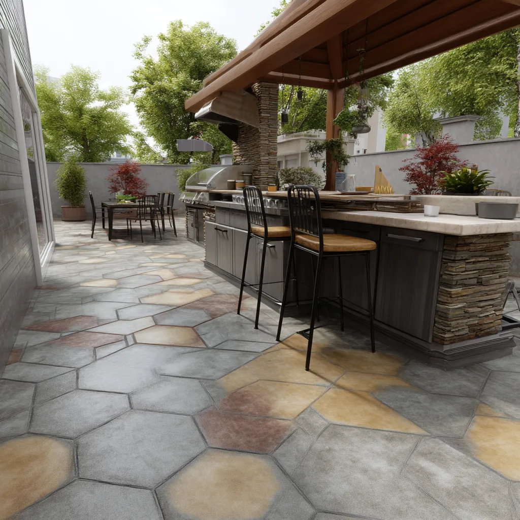 Natural elements don’t just severally damage genuine wood and stonework, but will cost you more time and money in repairs and maintenance. Adding a decorative concrete overlay to your existing patio will not only be ultra-durable, but will look new for several years to come.