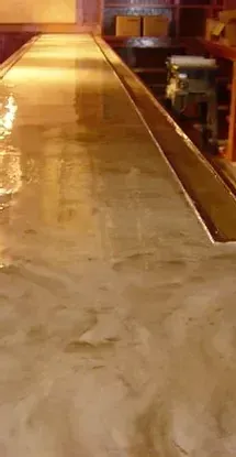 When the flooring is finished, it looks as smooth as glass and sparkles with metal effervescence. It is the metals themselves that are shining so vibrantly. These floors are set in a world apart because they are ‘exothermic’, indicating that they heat up when mixed and the colors will swirl and wander together and self-level on their own. They ‘do their thing’ and so each flooring is different and special. Any color -or combination of colors– wanted are available. Know that there will not be any other floor like it on the planet!